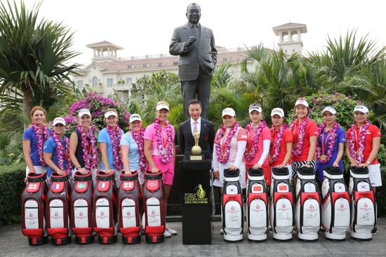 观澜湖副主席朱鼎耀先生为冠亚军双方球员颁奖并戴上花环,并在观澜湖的创始人朱树豪博士铜像前合影留念。有韩国第一高尔夫美女之称的安信爱今天在最后一段抓鸟收官,更是在颁奖现场开心地和同胞朴仁妃、柳萧然玩自拍。