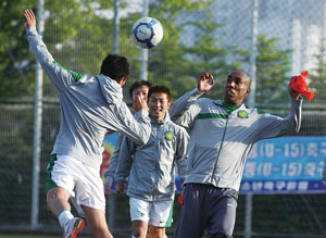 | 昨天下午,国安队在韩国进行了第一堂训练课,队员们的表现相当轻松供图/OSPORTS |