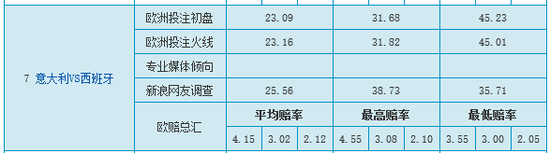 西班牙近10年来对阵意大利仅有1负,正式大赛上保持1胜2平的不败战绩,2008年的1/4决赛以0:0打平后点球击败对手,而2012年的欧洲杯决赛上曾以4:0大胜意大利而获得冠军,球队占据较好的心理优势。