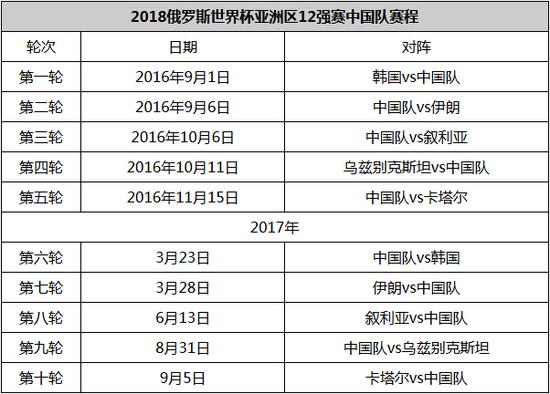 在早前12强赛的分组中,中国队最终与韩国、伊朗、乌兹别克斯坦、卡塔尔、叙利亚同组。根据规则,每组前2名将直接出线,两个小组第三参见附加赛,胜者与中北美及加勒比海地区第4名夺另一个世界杯名额。