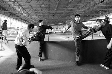 冬日阳光普照大地,刘翔走进训练馆开始晨练。和往常不同,今天的训练课中,刘翔身边多了一些“同行者”。