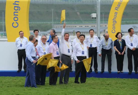 开幕典礼其中一个重要环节,由主礼嘉宾挥动旗帜,启动马匹出闸。
