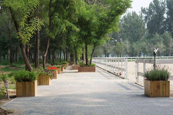 骏威国际马术俱乐部北京骏威国际马术俱乐部位于北京市新城滨河森林公园,地理位置优越、风景优美、交通便利。占地面积70亩,室内标准纤维场地30米x60米,室外标准纤维场50米x88米地及35米x88米训练场地;俱乐部拥有宽敞明亮的对排马房45间,马房内设有鞍具房、钉掌间、洗马区、烤电室、马匹按摩室等;五星级赛事标准障碍2套,标准舞步围栏及进口马匹跑步机。