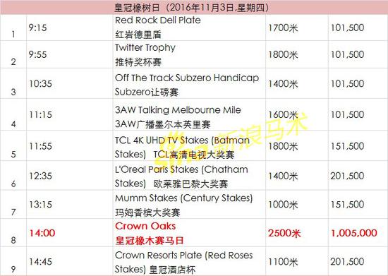 11月3日墨尔本杯日09:00视频直播室地址:http://video.sina.com.cn/l/pl/sportstv/1711999.html