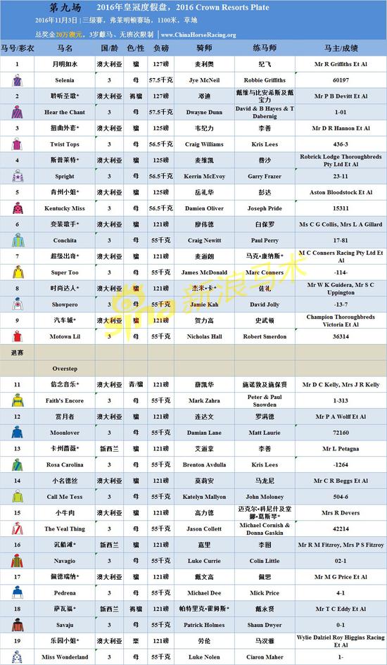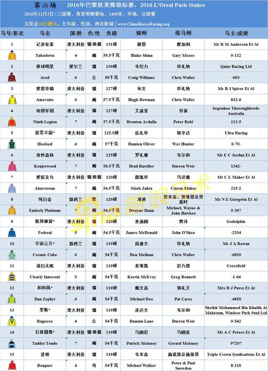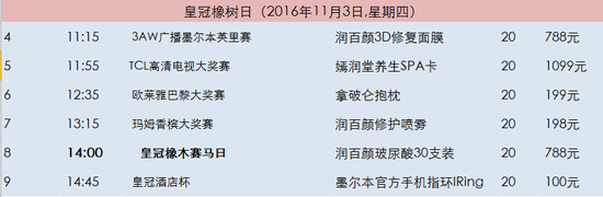11月3日6场猜头马活动比赛马匹出赛表