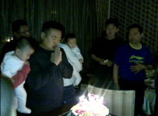 新浪体育讯 1月10日,是中国乒乓球男队主教练刘国梁的35岁生日。在他的生日聚会上,孔令辉、王皓、马琳等众多名将竞相争当“奶爸”,大家开心不已。图为刘国梁许愿。(图片来源:乒乓世界夏娃微博)