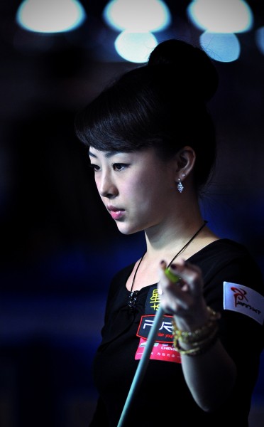 9月23日,中国选手潘晓婷在比赛中。当日,在2011年世界女子9球锦标赛中,潘晓婷以7比6战胜韩国选手林润美,晋级32强。