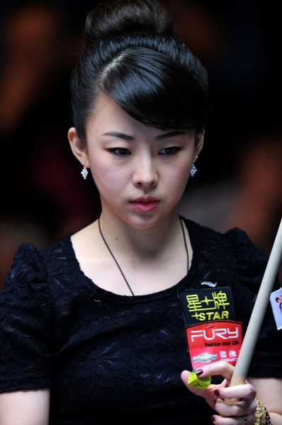 9月24日,中国选手潘晓婷在比赛中。当日,在沈阳举行的2011世界女子9球锦标赛中,潘晓婷以9比8战胜韩国选手金佳映,晋级8强。