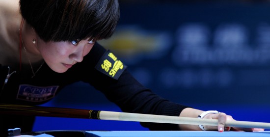 9月25日,中国选手韩雨在比赛中。当日,在沈阳举行的2011世界女子9球锦标赛半决赛中,韩雨以7比9不敌同胞陈思明,无缘决赛。