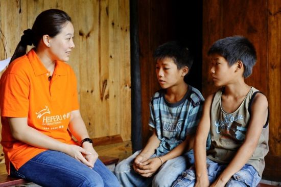 新浪体育讯 2011年10月25日讯,国际小母牛香港分会主席梁锦松、董事叶澍堃、小母牛爱心大使伏明霞及无线视艺员汤盈盈及张嘉儿,日前一同远赴贵州农村探访,亲身体验贫困农村生活,梁氏夫妇及叶氏更带同子女同行,了解小母牛的扶贫工作如何实际改善他们的生活需要,以身作则,以行动呼吁不同年龄阶层一同关注国内农村贫困境况及给予支持。图为伏明霞与孩子们交流。