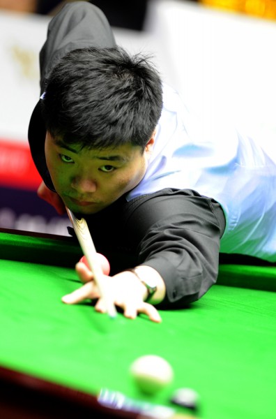 12月26日,丁俊晖在比赛中。当日,在江苏省宜兴市举行的2011中国职业斯诺克巡回赛总决赛中,丁俊晖以4比0战胜李岩,进入八强。
