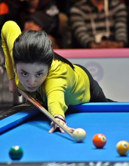 图文-2012世界女子花式台球公开赛落幕 周婕妤击球