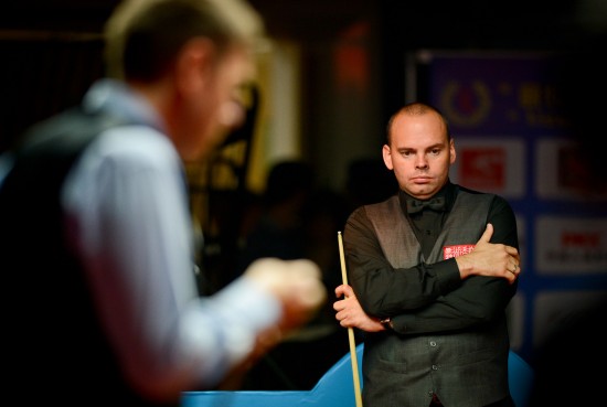 7月1日,宾汉姆(右)在比赛中。当日,在江苏省无锡市举办的2012年世界斯诺克无锡精英赛决赛中,英格兰选手宾汉姆以4比10不敌英格兰选手沃顿,获得亚军。