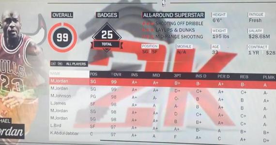 NBA 2K17游戏最新公布了一批球员的能力值,克里夫兰骑士队当家球星勒布朗-詹姆斯的能力值达到96。