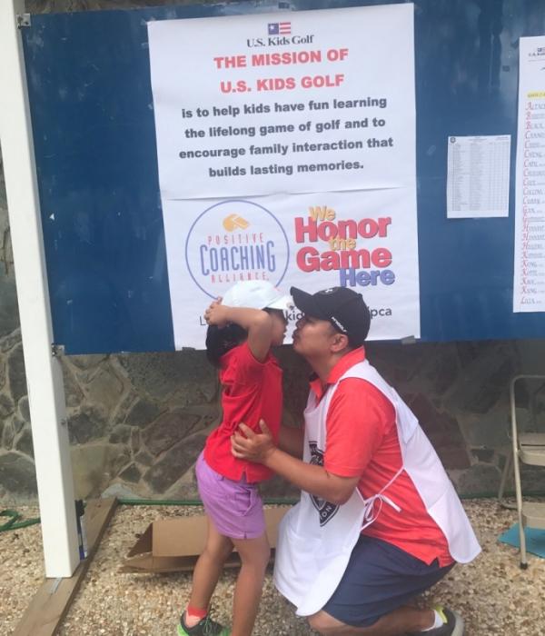 “训练时当教练,比赛时当球童,生活中当爸爸……最大的收获不仅仅是奖牌而是我们一家人在一起…和孩子在一起的点点滴滴。”