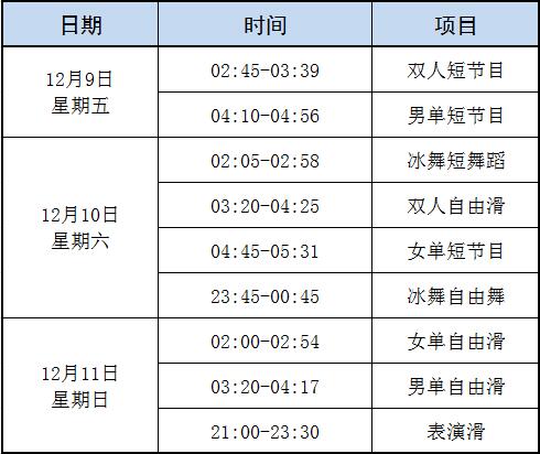 经过了六站分站赛的争夺,进入总决赛的选手们将为大奖赛冠军发起最后冲击。中国组合于小雨/张昊、彭程/金杨将在双人滑项目中力争奖牌,并向冠军发起冲击。男单项目,金博洋作为第一替补参加。