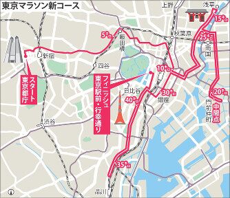 东京马拉松的总设计者早野忠昭近日透露了变更赛道的缘由:“从2007年第一届东京马拉松开始,就听到纽约、波士顿等WMM(世界马拉松系列赛)的相关人士抱怨:起点在东京都厅周边热闹的地方,但终点就显得太寂静了。所以我们一直在考虑可以提升比赛氛围的更合适的终点地。”明年的比赛后半程有较大的变动,终点从之前的临海地区的东京国际展示场更换到东京都中心地——位于千代田区的东京车站前的行幸大道。问及变更后的利与弊,早野表示:“选手们不用再受原先赛段的35公里后的强烈海风、高低起伏剧烈等因素干扰,新赛段更加平坦有利于跑出新的世界纪录;而且新赛段路经神保町的古书店街、两国国技馆等具有东京特色的地方,可以让选手们更能领略东京的风情。”他称弊端是会增加1-2个折返点,对于一流选手们是一个不利因素,但影响不会太大。
