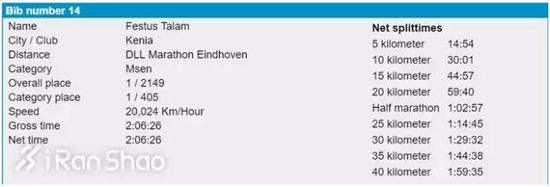 更有意思的是,21岁的肯尼亚冠军塔兰(Festus Talam),其实是赛事主办方聘请的兔子。他的使命是将第一集团带到35公里——按全程2小时06分的配速,每公里2分59秒,就算大功告成。