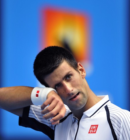 1月18日,塞尔维亚选手焦科维奇在比赛中。