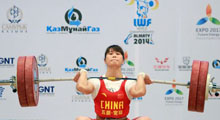 在美国休斯顿进行的2015年世界举重锦标赛结束了女子77公斤级争夺,中国选手康月以127公斤和282公斤获得抓举和总成绩冠军[详情]
