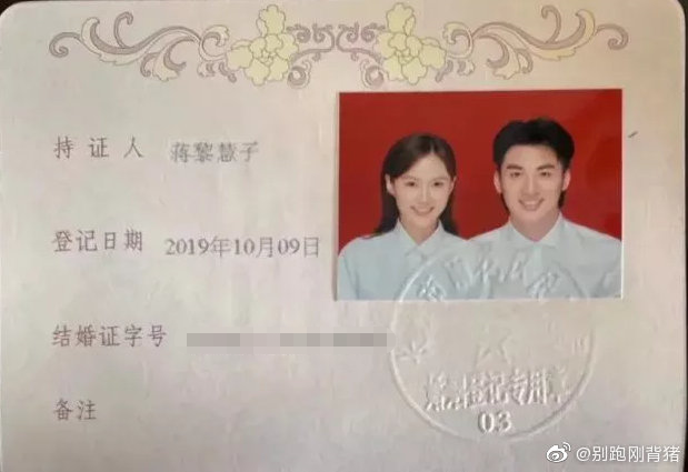 10月11日,网友@别跑刚背猪晒出了于德豪的结婚照,登记日期是10月9日,恭喜于德豪和妻子蒋黎惠子。