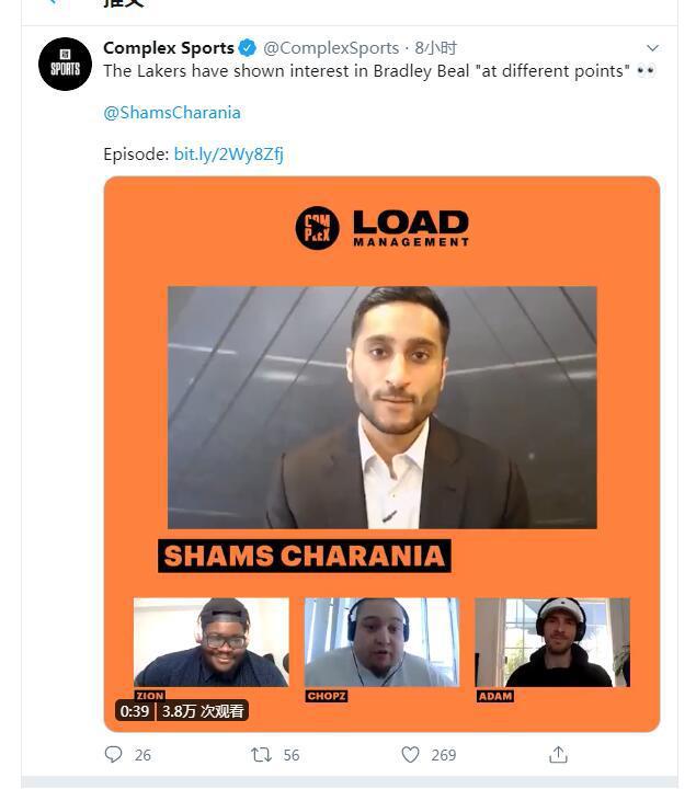 根据查拉尼亚的报道,热火和鹈鹕也都有兴趣交易得到布拉德利-比尔。此前的报道湖人和篮网都想增加第三名巨星,他们也同时把目光投向了比尔。