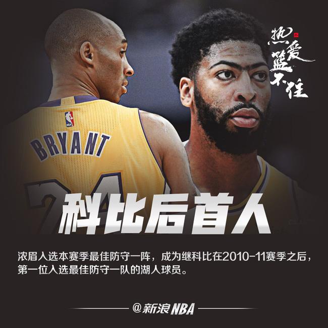 浓眉是继科比在2010-11赛季之后第一个进入NBA最佳防守一队的湖人球员。