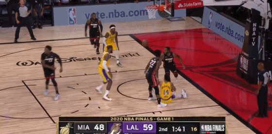 詹姆斯单挑巴特勒,左手反篮打进,比赛彻底失去了悬念。湖人第四节依然把詹眉留在场上,直到比赛结束前1分23秒,沃格尔才把他俩换下。湖人不想出现意外状况,这场比赛必须拿下。