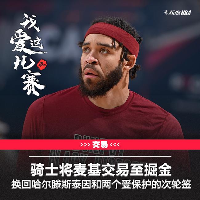 交易内容为:骑士送出麦基,从掘金换回哈尔滕斯泰因和两个未来受保护的次轮签(一个为2023年前46顺位受保护次轮签,一个为2027年不受保护次轮签)。