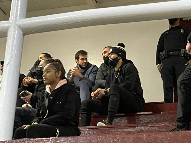 北京时间1月12日,斯蒂芬-库里带勇士全队出席球队新星詹姆斯-怀斯曼的高中球衣退役仪式。