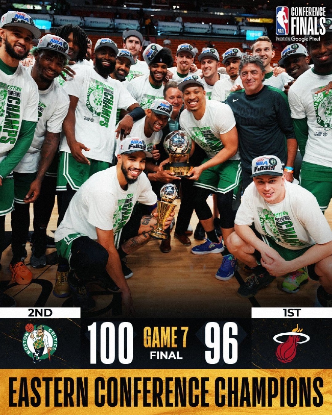 最终,凯尔特人100-96险胜热火,大比分4-3淘汰对手晋级总决赛。