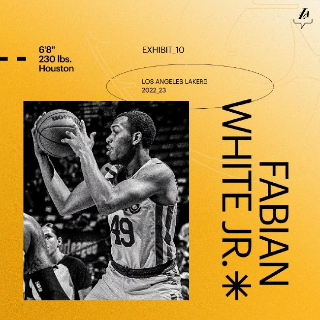 法比安-怀特二世身高2米04,体重104公斤,今年23岁,此前为湖人出战2场夏季联赛,场均可以得到5.5分7篮板。