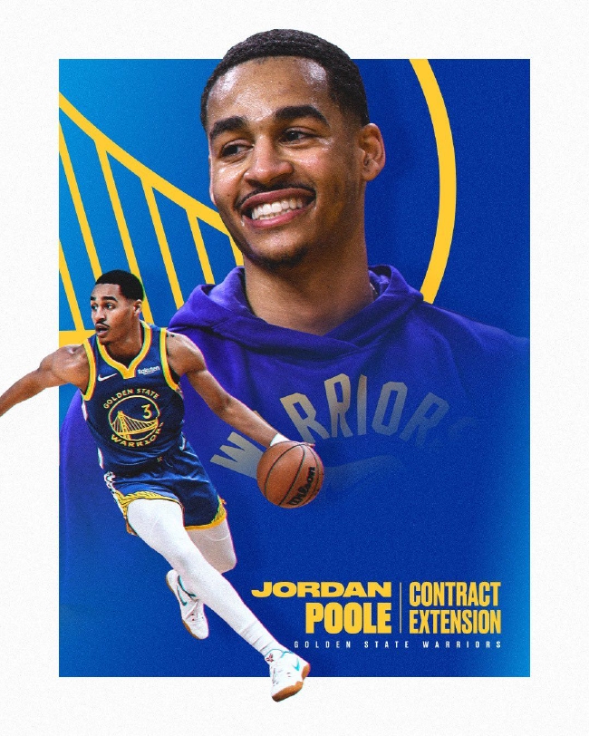 北京时间10月17日,勇士队官方宣布正与乔丹-普尔达成提前续约合同,据此前的报道,双方的新合同为4年1.4亿美元。