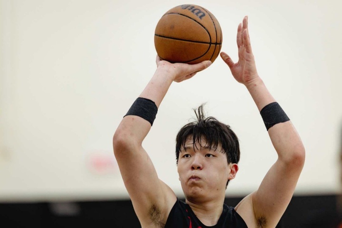 开拓者官方晒训练营第三天训练照:杨瀚森的双臂缠上了弹性绷带