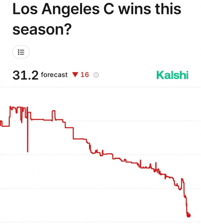 美媒KalshiSports更新了快船本赛季最终胜场预测——31.2胜。