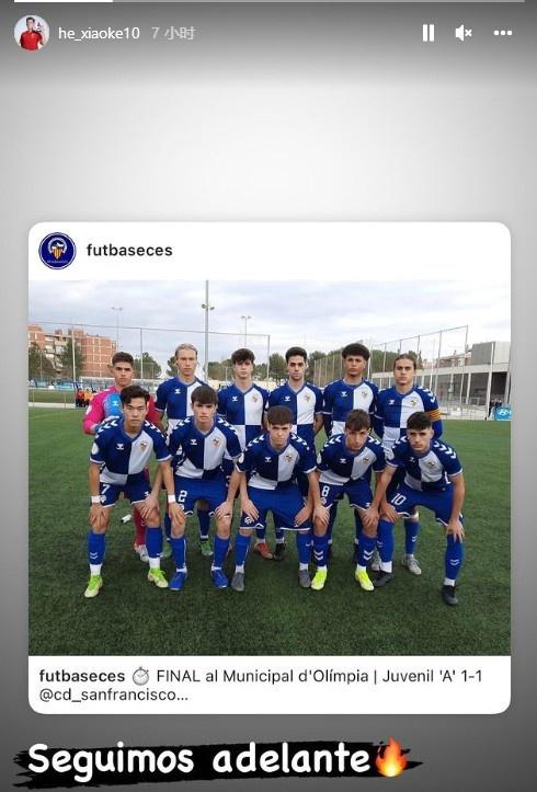 赛后,何小珂转发了本场比赛的消息并用西班牙语配文:“让我们继续前进!”