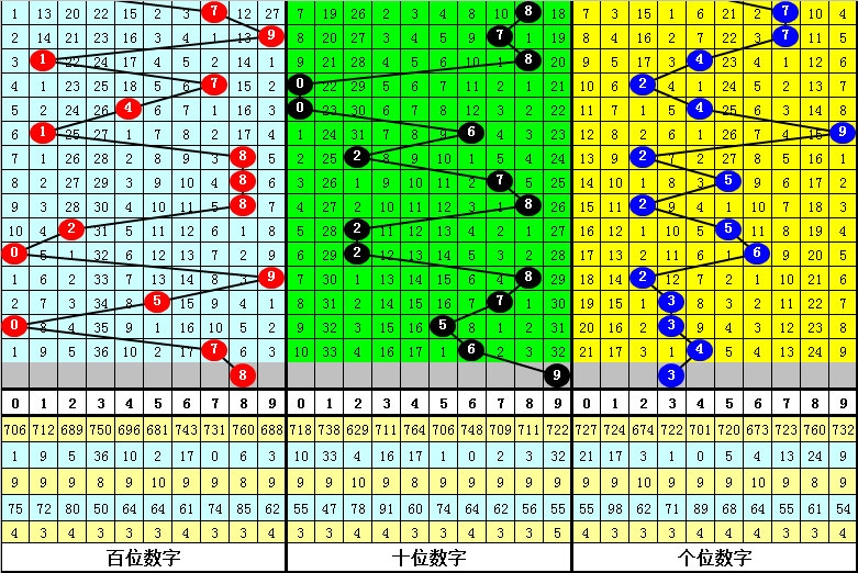 百个位合:前10期百个位两码合开出:0、0、3、0、7、6、1、8、3、1,其中百个位两码合012路比为6:3:1,奇偶比为5:5,本期看好百个位两码合开出1路号,参考两码合1、4、7。