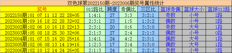 开奖回顾:福彩双色球第2023006期奖号为:02 10 12 14 24 26 + 05。奖号特征为:红球012路比2:1:3,奇偶比0:6,三区比2:2:2,蓝球开出小号、2路。
