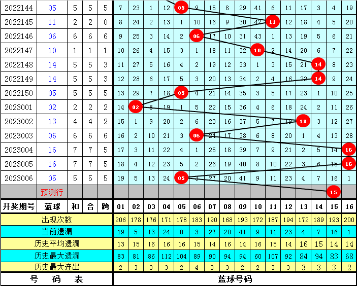 蓝球6码参考:07 09 10 11 15 16