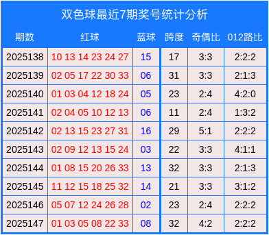 上期开奖号码的红球跨度为32,奇偶比4:2,012路比为2:2:2。