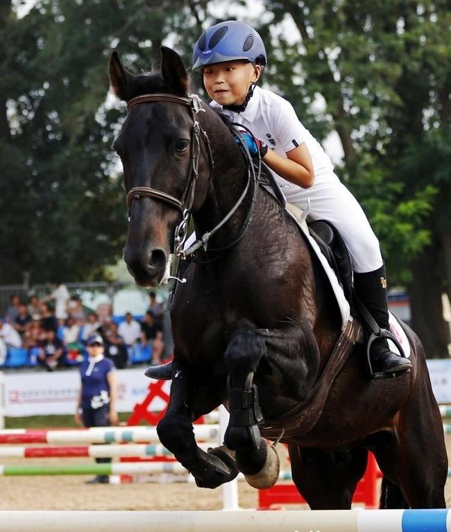 当天下午,场地障碍项目的三个级别的决赛也在瞩目中隆重打响。在最先打响的80cm障碍赛决赛中,来自海淀外国语学校国际运动学院的小骑手侯荔涵骑乘马匹“CRAZY GIRL”以零罚分、73.16秒摘得青少年骑手组冠军。而年轻马组的冠军则被金伯乐马术学府的名将张勇与爱马“小七”以零罚分、74.55秒摘得。