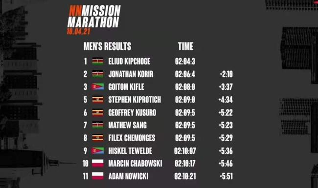 基普乔格领先了亚军科里尔2分10秒,本场比赛也将是基普乔格在东京奥运会前的最后一场热身赛。