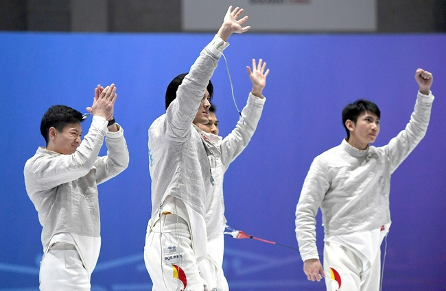 决赛中,江苏队给广东队制造了不小麻烦,孙伟和代锐在场上得分后频频怒吼给自己加油打气,帮助江苏队一直紧咬比分。广东队则依靠许英明、邓小浩和梁建豪三位选手的出色发挥,始终保持着微弱优势。最后一局,邓小浩顶住压力,多次主动进攻得手,帮助广东队以45:41战胜江苏队,赢得了这块男子佩剑团体赛金牌。
