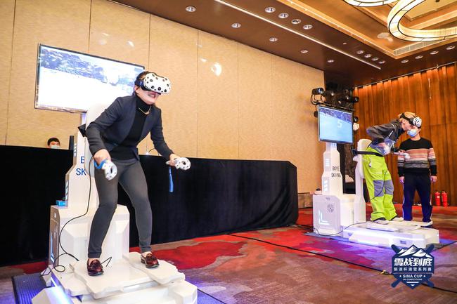 本次新浪杯跨界论坛还与数字冰雪大会的VR供应商合作,将VR体验滑雪机搬到了活动的现场。VR滑雪模拟机带领着玩家身临其境的感受着雪场滑雪的魅力,模拟机的特质同时也在很大程度上保证了无滑雪经验玩家的安全问题。在VR滑雪中,玩家会遇到路障、树木、翻滚的岩石、雪山和峡谷等,玩家可通过头部左右摇摆手持控制器来调整前进的速度和躲避障碍,体验感十足。其中艺术体操世界冠军朱丹,雪圈大咖张驰等嘉宾们通过VR滑雪模拟器感受到滑雪所带来的刺激和乐趣。