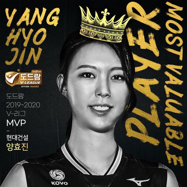 北京时间4月10日消息,2019-2020赛季韩国女排联赛颁奖典礼昨日落下帷幕,现代建设副攻梁孝珍夺得女排联赛MVP的同时入选最佳阵容,成为最大赢家。