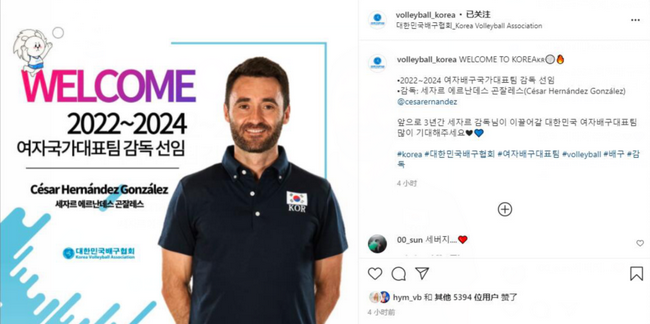 北京时间10月28日消息,韩国排协任命西班牙人塞萨尔-埃尔南德斯-冈萨雷斯为新一届韩国女排主教练,任期从2022年至2024年。现年44岁的冈萨雷斯从2019年开始出任韩国女排的助理教练,辅佐前任主帅拉瓦里尼在东京奥运会获得第4名。