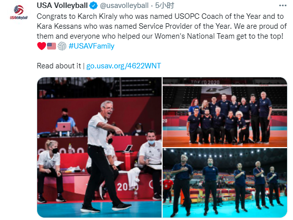 北京时间4月7日消息,美国奥委会宣布女排国家队主帅基拉里当选2021年美国年度最佳奥运教练。在基拉里的带领下,美国女排在2021年度取得巨大成功。不仅在国家联赛实现三连冠,还在东京奥运会力压群芳首夺奥运冠军。