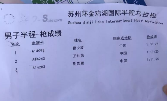 曹少波以1小时8分26秒的成绩获得2018苏州环金鸡湖国际半程马拉松比赛男子组冠军,王仕荣以1小时11分20秒的成绩位列第二;谢志鹏则以1小时11分25秒摘得季军。