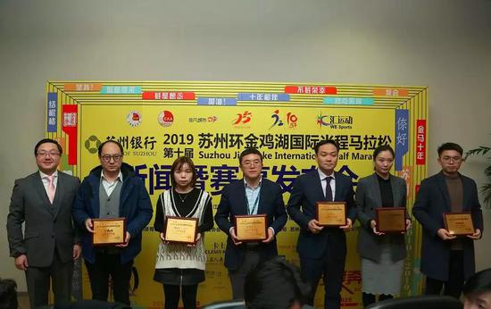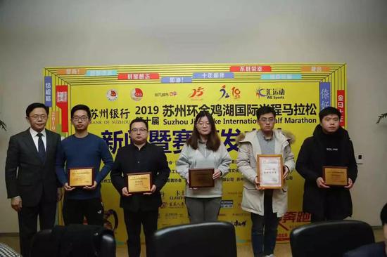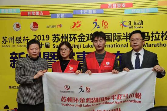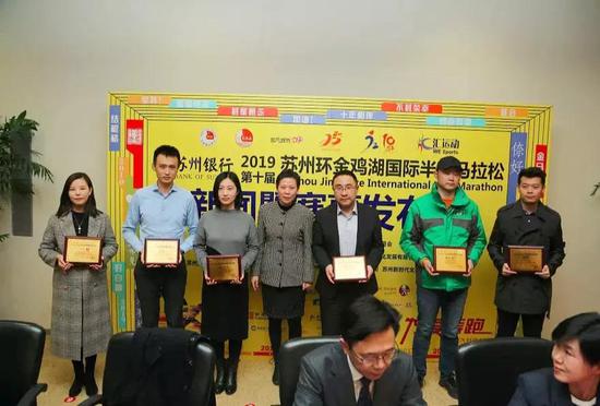 发布会上,苏州银行、东吴人寿、华润怡宝、卡士酸奶、迪卡侬、肯德基、旭创科技、中海地产、新建元集团、新时代集团、史丹利百得、麦点彩印、中新公用、禹洲地产、独墅湖世尊酒店、文博诺富特酒店、绝味鸭脖和康师傅方便面等多家赞助商企业代表,解放军第904医院、苏州蓝天救援队、苏州绿舟应急队等医疗救援机构代表和急救跑者代表 、苏州志愿者协会和志愿者代表以及官方配速员代表等,一同在新闻发布会现场参加了授牌、授旗仪式。
