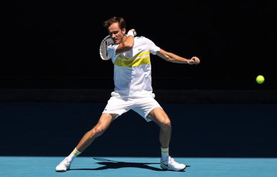 2月15日,俄罗斯选手梅德韦杰夫在比赛中回球。新华社记者 白雪飞 摄
